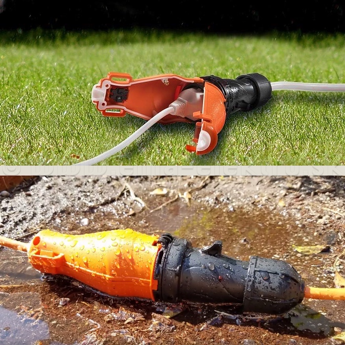 Mechanická a vodeodolná spojka pre domáce 230V vidlice