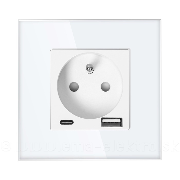 Zásuvka 230V AE-13308/W + 1x USB-A / 1xUSB-C