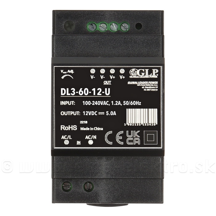 Napájací zdroj DL3-60-12-U predstavuje spoľahlivé a kompaktné riešenie